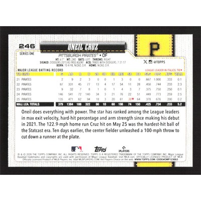 This is a 2026 Topps Oneil Cruz baseball card. The card is #246 and pictures show condition.