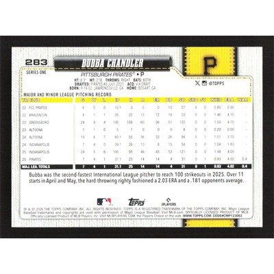 This is a 2026 Topps Bubba Chandler baseball card. The card is #283 and pictures show condition.