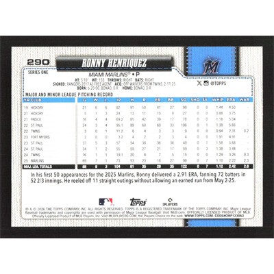 This is a 2026 Topps Ronny Henriquez baseball card. The card is #290 and pictures show condition.
