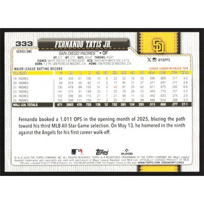 This is a 2026 Topps Fernando Tatis Jr. baseball card. The card is #333 and pictures show condition.