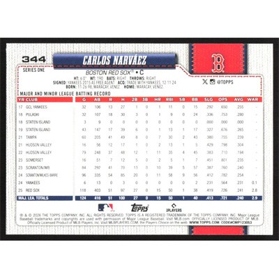 This is a 2026 Topps Carlos Narvaez baseball card. The card is #344 and pictures show condition.
