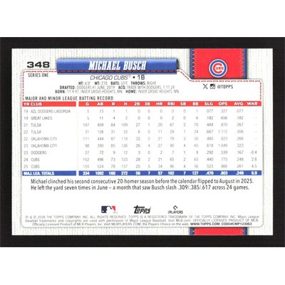 This is a 2026 Topps Michael Busch baseball card. The card is #348 and pictures show condition.