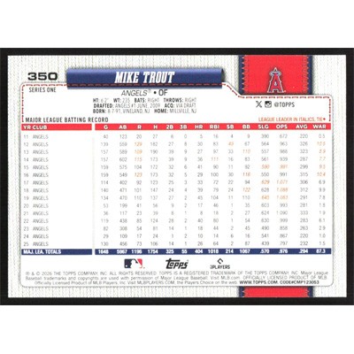This is a 2026 Topps Mike Trout baseball card. The card is #350 and pictures show condition.