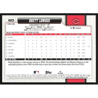 This is a 2026 Topps Rhett Lowder Future Stars baseball card. The card is #60 and pictures show condition.