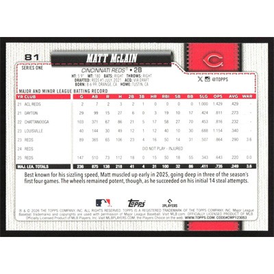 This is a 2026 Topps Matt McLain baseball card. The card is #81 and pictures show condition.