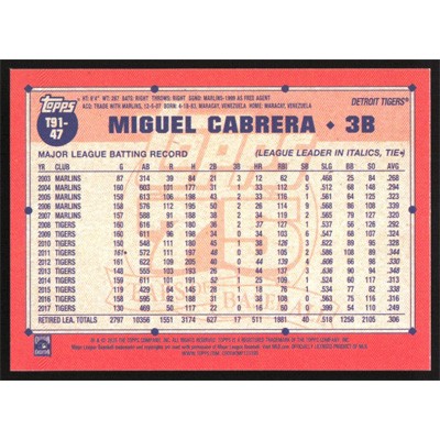 This is a 2026 Topps '91 Pink Miguel Cabrera baseball card. The card is #T91-47 and pictures show condition.