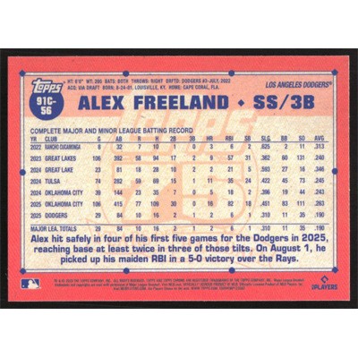 This is a 2026 Topps '91 Silver Pack Chrome Alex Freeland baseball card. The card is #91C-56 and pictures show condition.