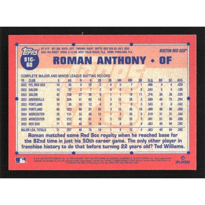 This is a 2026 Topps '91 Silver Pack Chrome Roman Anthony baseball card. The card is #91C-60 and pictures show condition.