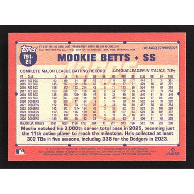This is a 2026 Topps '91 Mookie Betts baseball card. The card is #T91-21 and pictures show condition.