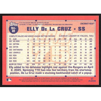 This is a 2026 Topps '91 Elly De La Cruz baseball card. The card is #T91-22 and pictures show condition.