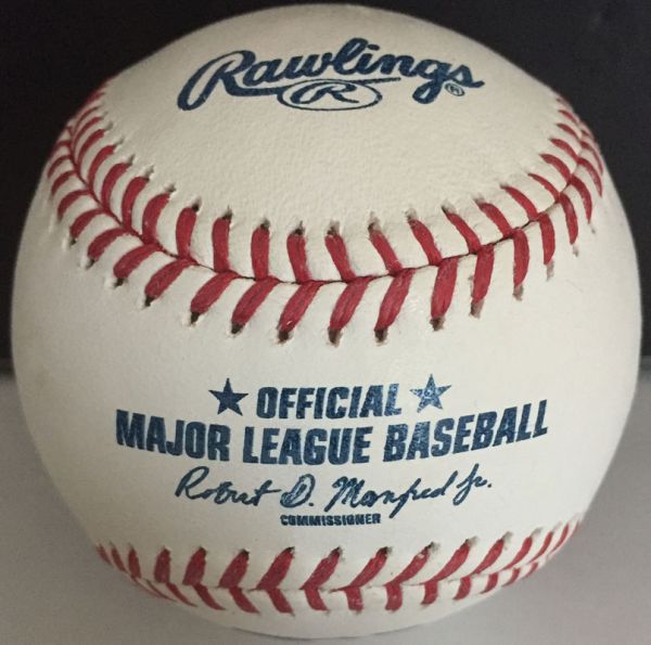 This is an Andrelton Simmons autographed Manfred era Rawlings Official Major League Baseball. This ball has been hand signed, by Simba, in blue ballpoint pen on the sweet spot, and is guaranteed authentic by Ballcardz.com.